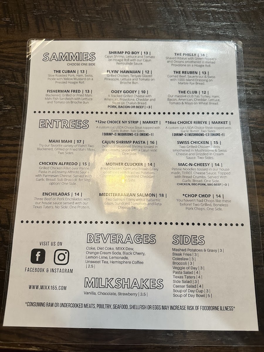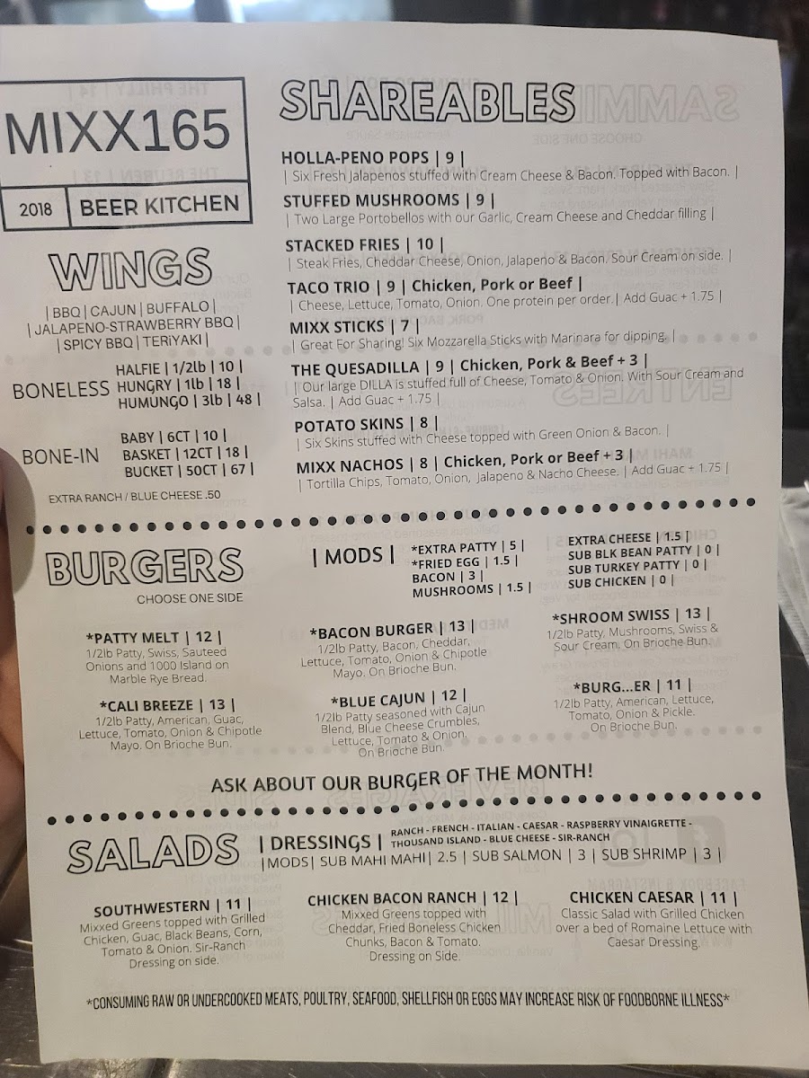 Welcome to MIXX 165, a hidden gem located at 165 W Sandusky St, Mechanicsburg, OH. This lively eatery offers a delightful blend of comfort food and craft beverages, ensuring every meal is a memorable experience. The menu is diverse, featuring everything from mouthwatering burgers to fresh salads and savory wraps. The standout items include their renowned bacon burger, made with high-quality, juicy beef, and the unique meatloaf served atop Texas toast—a fan favorite.